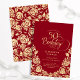 Soirée 50ème anniversaire en or rouge. Design classique avec rose, faux feuille d'or et police de script de typographie. Carte invitation tendance parfaite pour une célébration anniversaire élégante. Personnalisez avec vos propres détails. Peut être customisé à n'importe quel âge. Invitations Zazzle imprimées ou téléchargement instantané modèle imprimable numérique.