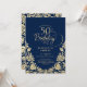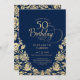 Invitation d'anniversaire 50 ans élégante bleu marine or. Design classe avec des roses, fausse feuille d'or et police de caractères script. Carte d'invitation tendance parfaite pour une célébration d'anniversaire féminine stylée. Personnalisez avec vos propres détails. Peut être personnalisé pour n'importe quel âge. Cartes d'invitation Zazzle imprimées ou modèle de template numérique imprimable instantané.