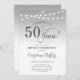 Invitation du 50e anniversaire. Design élégant en argent et blanc avec police de script et lumières à cordes de fées. Salut à 50 ans. Peut être personnalisé à tout âge! Message-moi si vous avez besoin d'une personnalisation plus poussée.