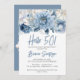 Dusty bleu floral 50e anniversaire invitation pour une fête d'anniversaire amusante