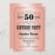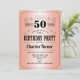 Invitation à la fête du 50e anniversaire. Elégant film d'or et design noir rétro faux rose. Peut être customisé à n'importe quel âge!