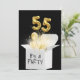 Ballons d'or avec étincelles et rubans dans une boîte blanche sur arrière - plan noir pour la fête du 55e anniversaire. Le texte de la zone peut être modifié. La couleur Arrière - plan peut être modifiée.