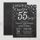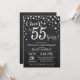Invitation anniversaire de mariage 55 ans tableau noir et argent. Cinquante-cinq ans d'anniversaire de mariage. Fond de diamant de paillettes noir et argent tableau noir. Confettis argentés. Anniversaire adulte. Fête d'anniversaire pour homme ou femme. Pour une personnalisation supplémentaire, veuillez cliquer sur le bouton "Personnaliser" et utiliser notre outil de conception pour modifier ce modèle.