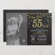55e anniversaire de mariage avec photo personnalisée. Invitation tableau noir et or. Cinquante-cinq ans d'anniversaire de mariage. Fond diamant pailleté noir et or. Confettis dorés. Anniversaire adulte. Fête d'anniversaire pour homme ou femme. Pour une personnalisation supplémentaire, veuillez cliquer sur le bouton "Personnaliser" et utiliser notre outil de conception pour modifier ce modèle.