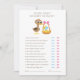 Célébrez votre baby shower avec une touche de charme et de nostalgie avec le jeu Baby Shower Super Simple 5 Petits Canards Baby Trivia Garçon ! Avec de charmantes illustrations inspirées de la chanson Super Simple adorée "5 Little Ducks", ce jeu donne le ton parfait pour un événement amusant et interactif. Les invités s'amuseront à participer à un jeu de trivia sur le bébé tout en étant entourés du thème fantaisiste du canard. Entièrement personnalisable, ce jeu apporte une atmosphère douce et ludique à votre célébration, la rendant vraiment inoubliable.