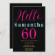 C'est une invitation à la fête du 60e anniversaire moderne et élégante. Ce design chic est en typographie rose vif, bleu et or et un arrière - plan noir. Il s'agit d'un design personnalisé, avec le texte "Hello 60", et espace vous permettant d'ajouter votre nom et les détails de votre fête. Une version plus petite du logo personnalisé "Hello 60" de la fête de typographie est répétée au dos, avec les détails principaux de la fête (nom, âge et date de célébration). Ce design élégant est parfait pour un 60ème anniversaire élégant et inoubliable fête. Pour personnaliser, il vous suffit d'ajouter votre nom, votre date, le lieu de la fête et les informations RSVP dans la zone de texte personnalisée. Pour modifier la couleur ou la police, consultez l'outil d'édition de conception. Si vous avez besoin d'aide pour la personnalisation, la mise en correspondance de produits ou pour un design personnalisé, contactez-moi via zazzle conversation.