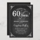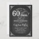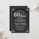 Invitation du 60e anniversaire. Elégant design vintage noir et blanc avec motif de tableau noir et police de script. Salutations à 60 ans ! Peut être personnalisé à tout âge! Message-moi si vous avez besoin d'une personnalisation plus poussée.