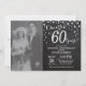60e Anniversaire de Mariage avec photo personnalisée. Invitation Ardoise Noir et Argent. Soixantième Anniversaire de Mariage. Fond Diamanté Ardoise Noir et Argent. Confettis Argent. Anniversaire Adulte. Fête d'anniversaire pour homme ou femme. Pour une personnalisation plus poussée, veuillez cliquer sur le bouton "Personnaliser" et utiliser notre outil de conception pour modifier ce modèle.
