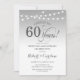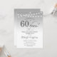 Invitation pour une célébration du 60e anniversaire de mariage. Design argent et blanc avec des guirlandes de lumières féeriques et une police élégante. À 60 ans de mariage ! Peut être personnalisé pour n'importe quelle année de mariage. Cartes d'invitation Zazzle imprimées ou modèle numérique à télécharger instantanément. Idéal pour une célébration élégante de 60 ans de mariage.