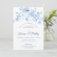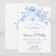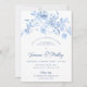 Elégant bleu rose floral 60e anniversaire dîner invitation.