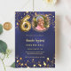 Une invitation photo moderne et design pour une fête du 60e anniversaire. Un arrière - plan bleu marine, décoré d'étoiles dorées. La couleur bleue est inégale. Personnalisez et ajoutez vos photos et détails de fête.