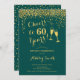 Invitation du 60e anniversaire. Salutations À 60 Ans ! Design élégant en vert émeraude et or. Il comprend des verres à champagne, des caractères de script et des confettis. Idéal pour une soirée de soixantième anniversaire. Personnalisez avec vos propres détails. Peut être customisé pour montrer n'importe quel âge.