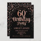 Invitation de fête du 60e anniversaire. Design élégant en or rose noir et faux parties scintillant. Comprend des polices de caractères et des confettis stylisés. Message-moi si vous avez besoin d'âge personnalisé.