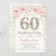 60th Birthday Party Invitation Design élégant en faux parties scintillant or, rose et blanc. Elégante invitation à la floraison avec diamants et roses. Parfait pour une célébration de glamour. S'il vous plaît, envoyez-moi un message si vous avez besoin d'une personnalisation plus poussée.