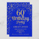 Invitation de fête du 60e anniversaire. Design élégant en bleu royal et faux or parties scintillant. Comprend des polices de caractères et des confettis stylisés. Message-moi si vous avez besoin d'âge personnalisé.
