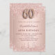 Une invitation moderne, élégante et glamour pour un 60ème anniversaire. Un faux rose or à l'apparence métallique arrière - plan avec une élégante parties scintillant d'or faux rose goutte à goutte, peinture goutte à goutte. Le nom est écrit avec un rose moderne de couleur or foncé à la main écriture style. Personnalisez et ajoutez les détails de votre fête. Le numéro 60 est écrit avec une police de style ballon, script.