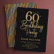 60th birthday party invitation in black and gold. Simple minimalist modern design, perfect for a classy men's or women's bday celebration. Features script font and stylish stripes on the back. Customize with your own details. Printed Zazzle invitations or instant download digital printable template.
