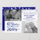Invitation de fête pour les 65 ans de mariage avec des étoiles bleues saphir et argentées, mettant en vedette une typographie rétro indiquant 65 ANS DE PRÉPARATION qui intègre leur année de mariage dans le design et comprenant deux photos (peut-être des photos d'alors et d'aujourd'hui). Le verso comprend des informations supplémentaires sur l'invitation. CONSELIL PHOTO : Pour des résultats rapides et optimaux, choisissez une photo avec le sujet au milieu et/ou recadrez-la à une forme similaire à celle montrée AVANT de la télécharger. Contactez le concepteur via Zazzle Chat ou makeitaboutyoustore@gmail.com si vous souhaitez que ce design soit modifié, sur un autre produit ou si vous souhaitez des articles coordonnés.