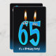 Aqua et bleu dégradé arrière - plan avec des globes oculaires sur des bougies pour l'invitation de fête du 65ème anniversaire.