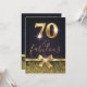 Noir élégant élégant et soixante-dixième invitation d'anniversaire d'or. Caractéristiques de conception d'arc scintillant de parties scintillantes d'or et d'or sur l'avant aussi bien que la feuille d'or 70. Ajoutez les détails de partie sur le dos.