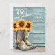 70 Et Fabulous Rustic Country Western Sunflower Invitations présente un design rustique de bottes de cowgirl remplies de tournesols aquarelle. Personnalisé en éditant le texte dans les zones de texte pour vos 70 et fabuleuses invitations de fête de 70e anniversaire. Créé par Evco Studio www.zazzle.com/store/evcostudio