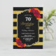 Invitation 70e Anniversaire Dîner Noir Or rayé Floral