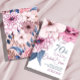 De grandes fleurs florales aux couleurs roses et bleues annoncent une invitation surprise à la fête d'anniversaire. Le rose et le blues sont les couleurs principales de cette invitation personnalisée chic et moderne. Modifiez facilement les informations pour votre propre invitation personnelle.