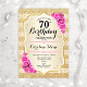Invitation du 70e anniversaire. Design élégant en or et rose. Comprend des bandes d'or de parties scintillant faux, des roses roses roses stylisées police et confetti. Parfait pour une fête d'anniversaire glam.