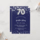 Une invitation moderne, élégante et glamour pour une fête de 70e anniversaire. Un arrière - plan bleu marine, décoré de faux étoiles argentées. Personnalisez et ajoutez votre nom et les détails de votre fête. Le numéro 70 est écrit avec une police de style ballon.