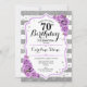 Invitation du 70e anniversaire. Elégant design de lavande blanche argentée avec fausse parties scintillant. Bandes d'argent et de blanc avec roses violets. Idéal pour une Soixante-dixième fête d'anniversaire.