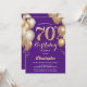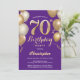 Invitation 70e anniversaire violet et ballons d'or Confetti