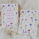 Des fleurs sauvages de printemps colorés entourent les détails de votre fête d'anniversaire. Moderne, tendance et féminin.