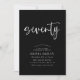 Ce design moderne blanc sur noir présente le mot "soixante-dix" dans une calligraphie de style script et une typographie moderne élégamment espacée, comprenant des polices serif classiques. Les invitations renversent vers un délicat motif triangulaire extensible en noir et gris chromatique. Convient aux hommes ou aux femmes. Choisissez parmi les invitations Zazzle imprimées avec différents styles d'angle et stock de papier magnifique, ou télécharger instantanément si vous en avez besoin maintenant, ou les deux afin que vous puissiez envoyer des invitations papier et numérique au besoin.