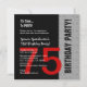 Ce design moderne en rouge, argent et noir est une façon élégante d'invitation de vos invités à une fête de 75 ans. Tout le texte est entièrement personnalisable. Vous pouvez modifier la couleur arrière - plan ou la couleur de texte pour un aspect différent. Je vous recommande le papier métallique dans la glace, qui donnera à vos invitations un éclat festif et brillant.