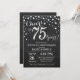 75e Anniversaire de Mariage Invitation Ardoise Noir et Argent. Soixante-quinze Anniversaire de Mariage. Fond Diamant Pailleté Ardoise Noir et Argent. Confettis Argent. Anniversaire Adulte. Fête d'Anniversaire pour Femme ou Homme. Pour une personnalisation supplémentaire, veuillez cliquer sur le bouton "Personnaliser" et utiliser notre outil de conception pour modifier ce modèle.
