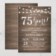 Invitation 75e anniversaire de mariage. Fond en bois rustique. Guirlande lumineuse. 1re, 2e, 3e, 4e, 5e, 10e, 15e, 20e, 25e, 30e, 35e, 40e, 45e, 50e, 55e, 60e, 65e, 70e, 75e, 80e, Toutes années. Anniversaire adulte. Fête d'anniversaire homme ou femme. Pour une personnalisation supplémentaire, veuillez cliquer sur le bouton "Personnaliser" et utiliser notre outil de conception pour modifier ce modèle.