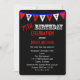 Cette amusante invitation à la fête de 75e anniversaire présente le mot HAPPY le long du sommet en drapeaux rouges et blancs sur un fond noir. La célébration du 75e anniversaire apparaît sous les drapeaux, tout comme vos importants détails invitations de fête du 75e anniversaire. Il s'agit d'un invitation de drapeau de typographie moderne pour une célébration de 75ème anniversaire. Copyright henishouseo