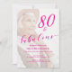 80 and Fabulous Eightieth Birthday Photo Hot Pink Script Invitation, classic script design 80th birthday invitation you can personalize and send out for your birthday party celebration. The words "80 and Fabulous" are set using popular typography for a clean minimal lovely look. Upload your favorite photo of the birthday celebrant, the opacity can be changed using the edit menu. The coloring in the photo can accent your chosen decor.
