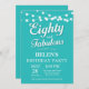 Invitation de 80e anniversaire avec des lampes à cordes Aqua Arrière - plan Turquoise. Fête d'anniversaire de la femme. Quatre-vingt et fabuleux. N'importe quel âge. Pour plus de personnalisation, cliquez sur le bouton "Customiser" et utilisez notre outil de conception pour modifier ce modèle.