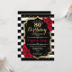 Invitation de 80e anniversaire Elégant design noir blanc rouge avec fausse parties scintillant. Bandes noires et blanches avec roses rouges. Parfait pour une fête d'anniversaire élégante.