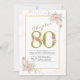 Invitation 80e anniversaire Floral Gold Script