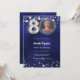 Une invitation photo moderne et design pour une fête du 80e anniversaire. Arrière - plan bleu marine, décoré d'étoiles. La couleur bleue est inégale. Personnalisez et ajoutez vos photos et détails de fête.