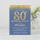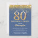 Invitation 80e anniversaire Parties scintillant bleue et or C