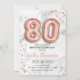 80e anniversaire invitation de fête. Design élégant en faux parties scintillant or rose avec effet marbre gris. La carte Invitation comporte des ballons de numéro d'or 80, des confettis et des caractères de script. Parfait pour une célébration anniversaire élégante. Message-moi si vous avez besoin d'âge personnalisé.