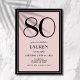 Invitation 80th Birthday Women's Modern Minimal Black Pink