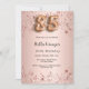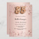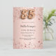 Une invitation moderne, élégante et glamour pour une fête du 85ème anniversaire. Un arrière - plan d'or rose avec étoiles.Le nom est écrit avec un script de style écrit à la main. Personnalisez et ajoutez les détails de votre fête. Le numéro 85 est écrit avec une police de style ballon, script.