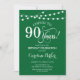 90e Invitation d'anniversaire. Elégant design vert et blanc de forêt émeraude avec des lumières à cordes et des caractères de script. Ça fait 90 ans. Peut être personnalisé à tout âge! Message-moi si vous avez besoin d'une personnalisation plus poussée.