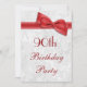 Les élégantes invitations aux Fêtes du 90e anniversaire des femmes. invitations de fête d'anniversaire de quatre-vingt-dix-neuvième ou quatre-vingt-dix ans. Magnifique arrière - plan damassé blanc avec une jolie et élégante image d'arc rouge et de ruban. Ces invitations glamour, chic et classe sont magnifiquement sophistiqués et sont décorés / imprimés des deux côtés.VEUILLEZ NOTER : Tous les invitations de Zazzle ont des images imprimées à plat. Images de cordes et de rubans achetées à partir de conceptions numériques-par-elena. Si vous avez besoin d'aide pour customiser votre invitation, veuillez me contacter par l'intermédiaire de mon magasin et je serai heureux de vous aider.