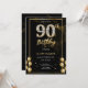 90e Invitation d'anniversaire Diamond Black and Gold,