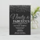 90e invitation anniversaire. Quatre-vingt-dix et fabuleux. Noir et Argent. Paillette argent. Fête d'anniversaire pour adulte. Pour hommes ou femmes. Pour plus de personnalisation, cliquez sur le bouton "Customiser" et utilisez notre outil de conception pour modifier ce modèle.